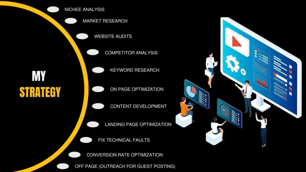 I start by conducting in-depth research to understand your business, target audience, and competitors. This forms the foundation of a data-driven digital marketing and SEO strategy.